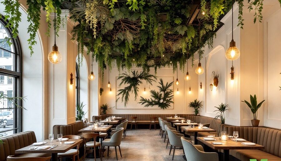 plafond vegetal ignifuge restaurant brasserie pour reception publique