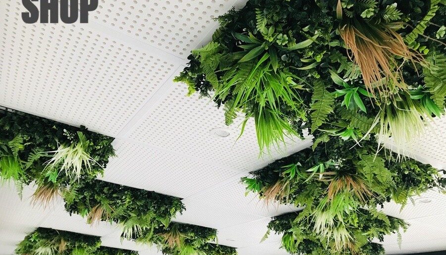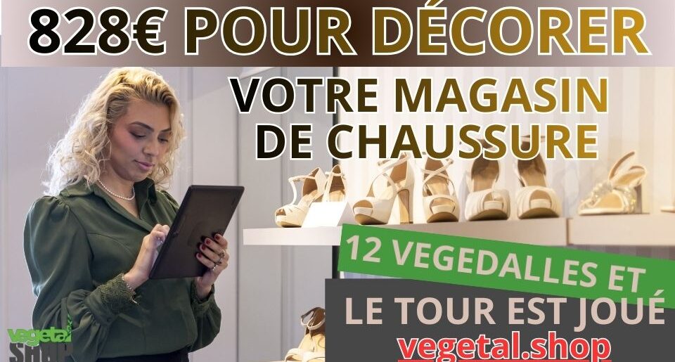 828€ pour décorer plafond végétal de votre magasin de chaussure