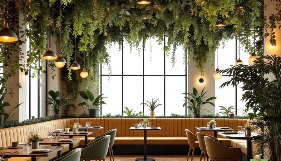 Plafond végétal pour restaurant spécial faux-plafond avec dalle végétalisée