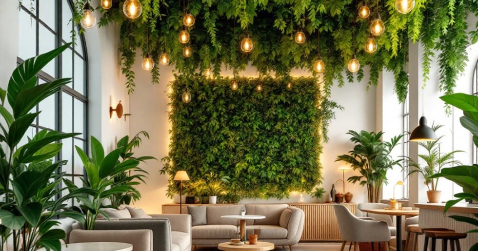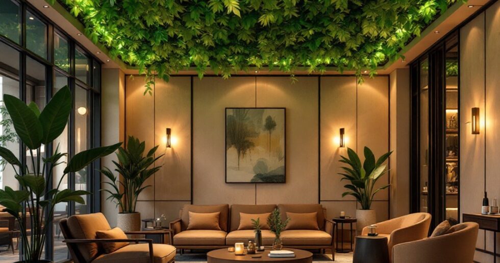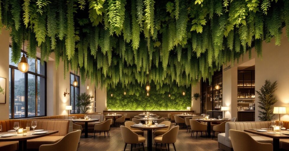 Plafond vegetal restaurant brunch brasserie burger resto rapide pour faux-plafond. Cher restaurateur, Et si votre plafond faisait partie du menu ? Avec notre plafond végétal artificiel, votre salle devient un véritable écrin nature où vos clients lèvent les yeux… et leur appétit monte d’un cran ! Aucun entretien, aucune feuille…