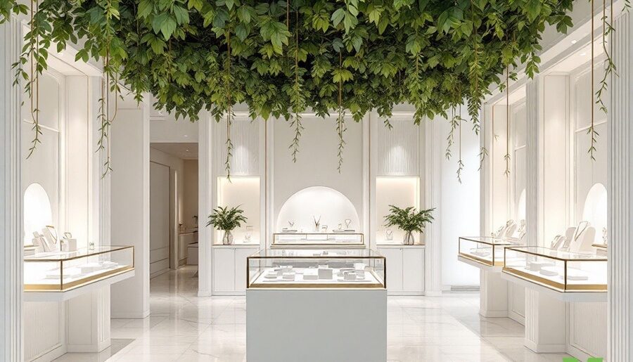 dalle vegetale plafond décoration pour magasin boutique de luxe