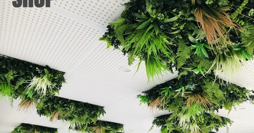 decoration vitrine végétalisée boutique magasin en artificiel ignifuge vegetal shop