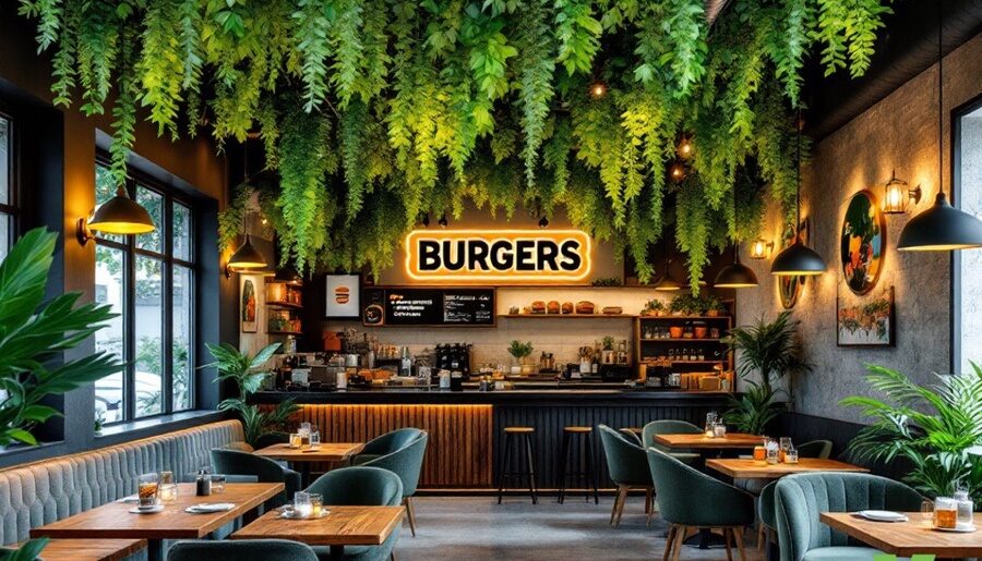 Comment décorer son restaurant avec un plafond vegetal restauration rapide burger