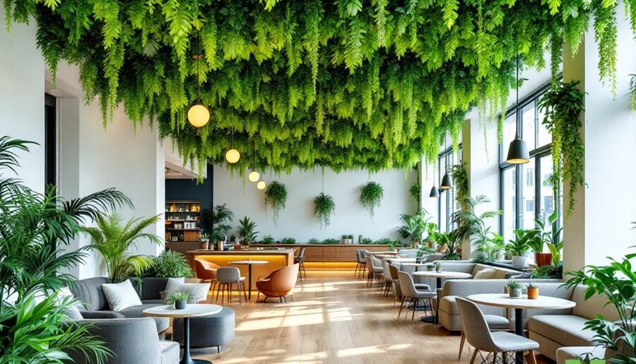 Plafond vegetal creperie café industriel