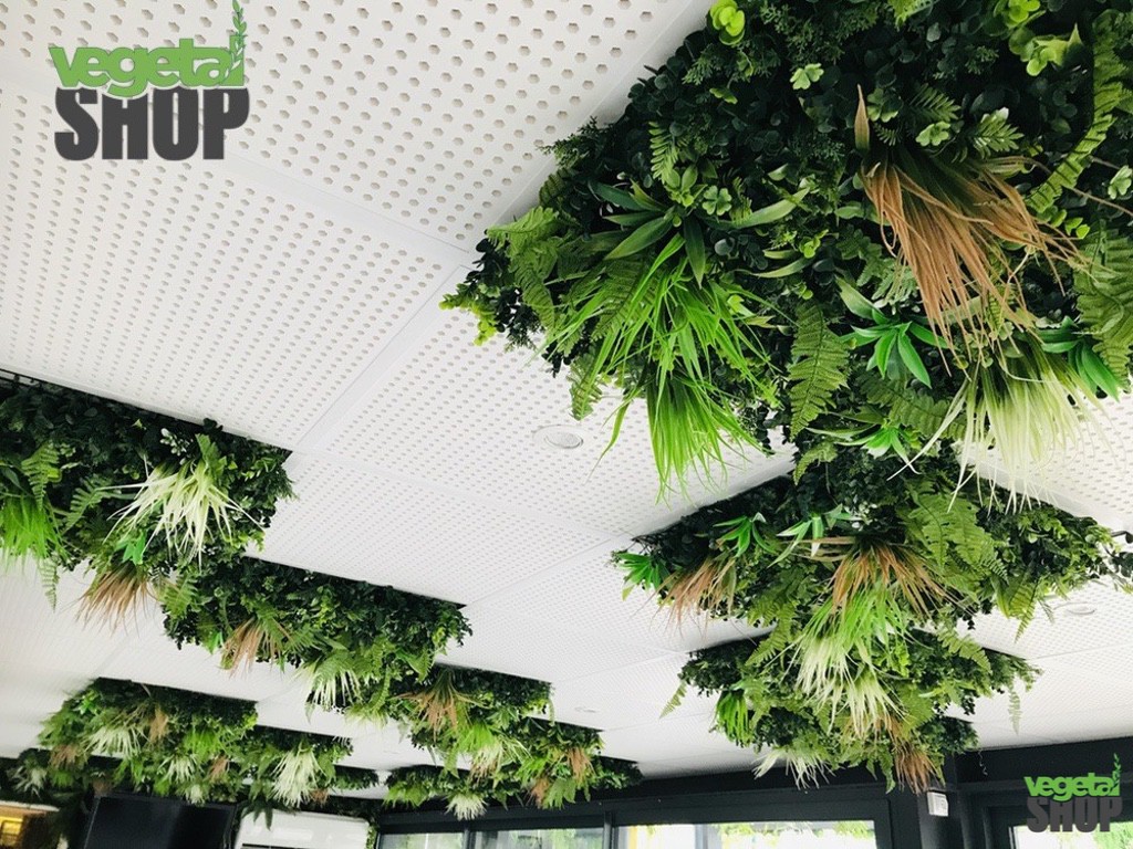 Dalle faux-plafond vegetal artificiel ignifugé anti-feu vegetal shop restaurant agence bureau
