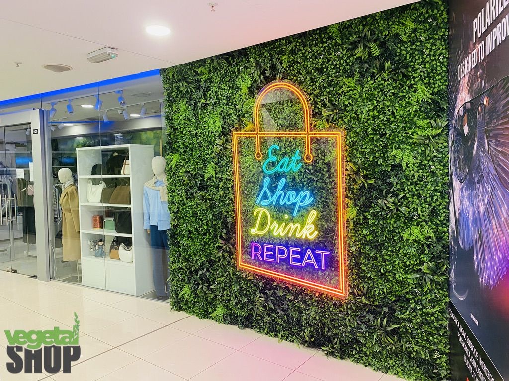 Dans une galerie commerciale, l’attention est une ressource rare. Le mur végétal artificiel ignifugé Vegetal Shop transforme un simple mur en point d’ancrage visuel, capable de ralentir le flux, capter le regard et valoriser l’espace. Le végétal vertical structure les volumes, adoucit les lignes architecturales et introduit une sensation de nature maîtrisée au cœur du parcours client.