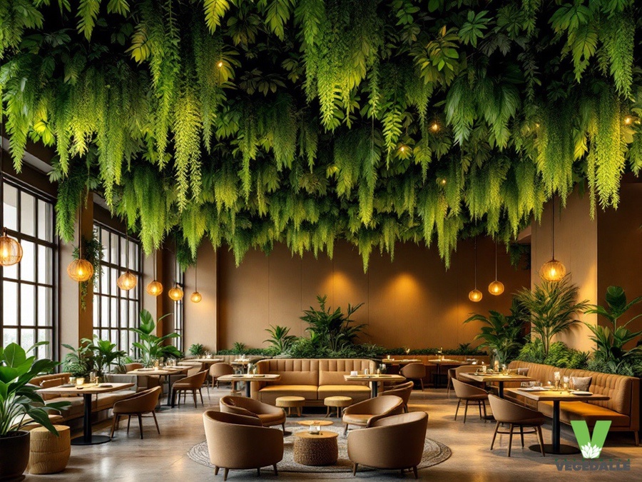 Plafond végétal artificiel ignifugé pour restaurant